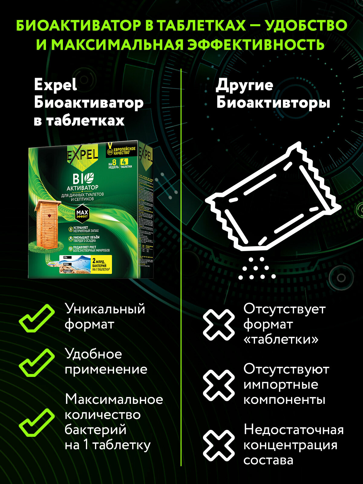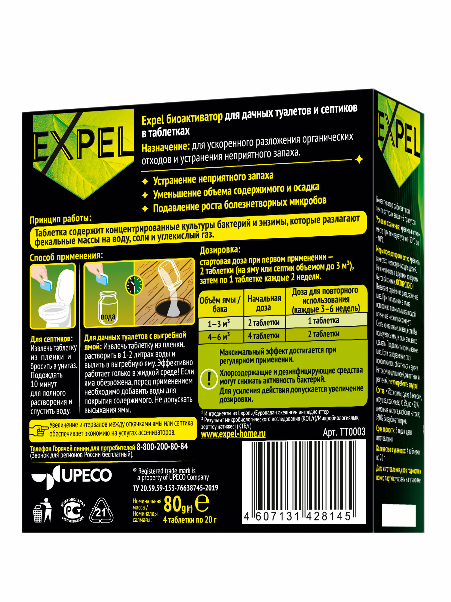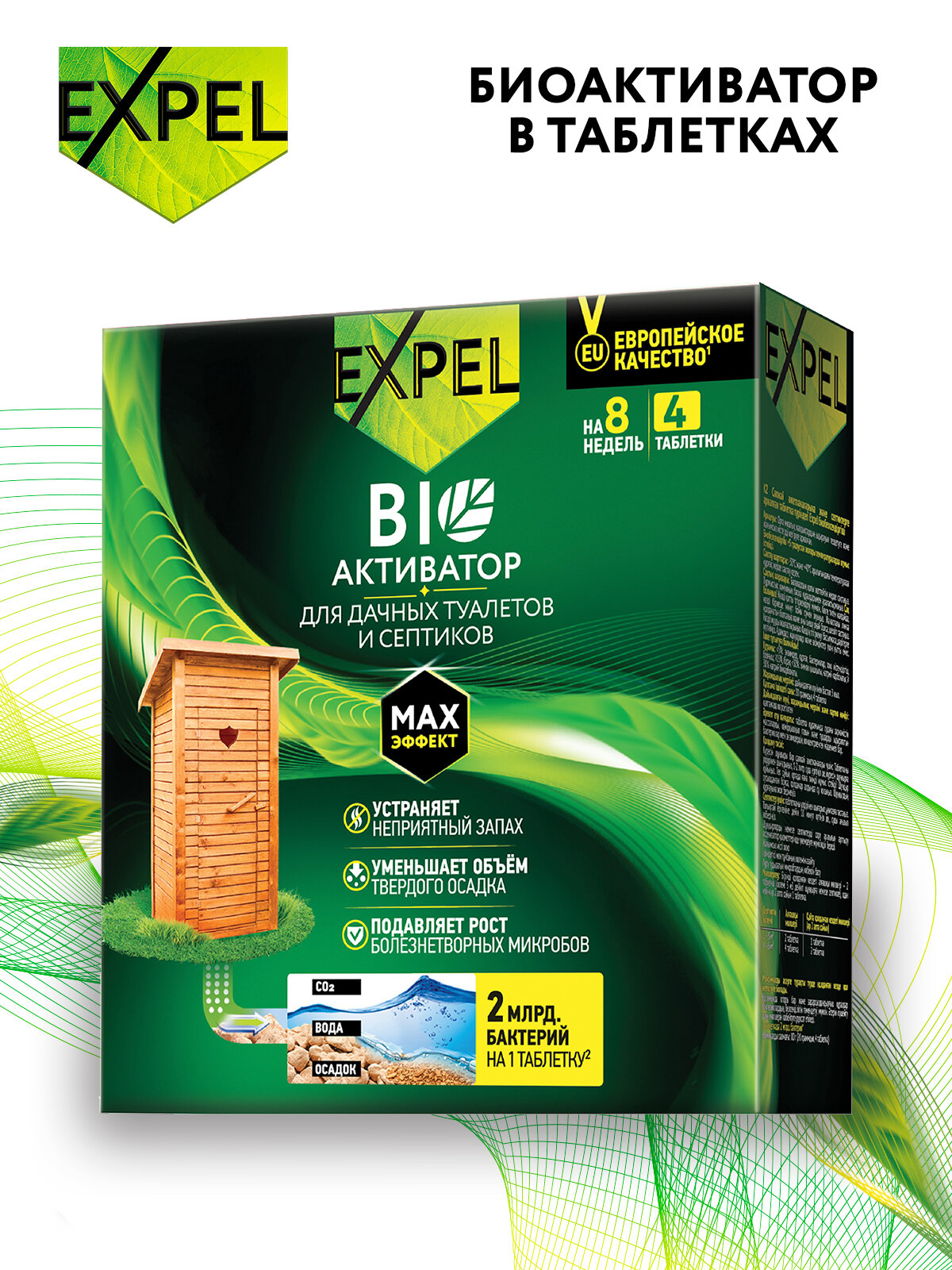 Expel биоактиватор для дачных туалетов и септиков 8 недель 4 таблетки