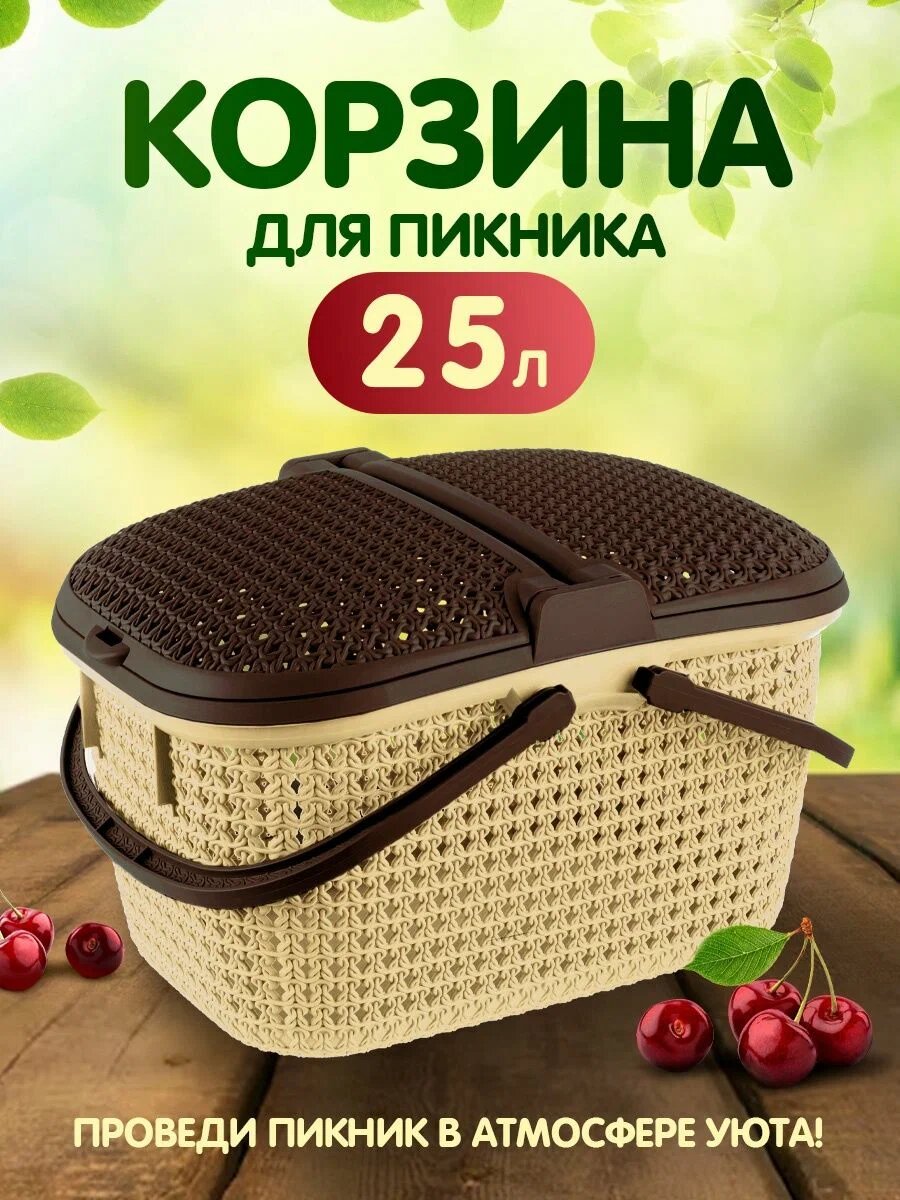 Корзина для пикника паола 25 л кремовая elfplast 2 259 ₽