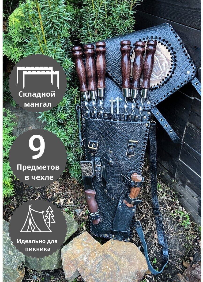 Отзывы на Набор шампуров для пикника подарочный / шампура в чехле с мангалом, топором и ножом Кизляр