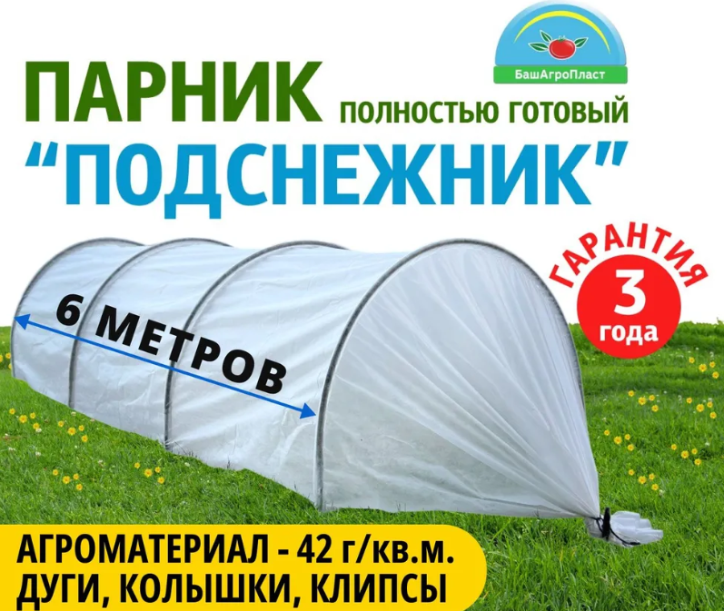 Парник с укрывным материалом спанбонд Подснежник, 6 метров (Башагропласт) / Мини теплица для дачи