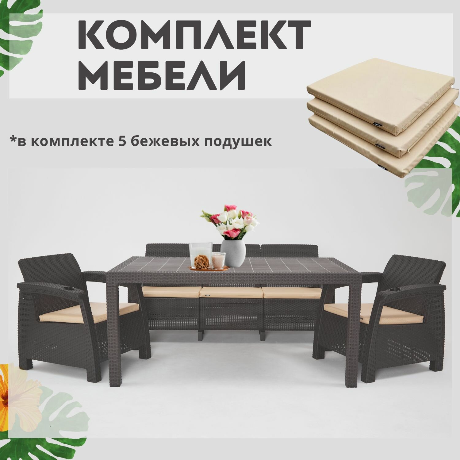 Комплект садовой мебели из ротанга Set 5+2+1+Bt, коричневые подушки