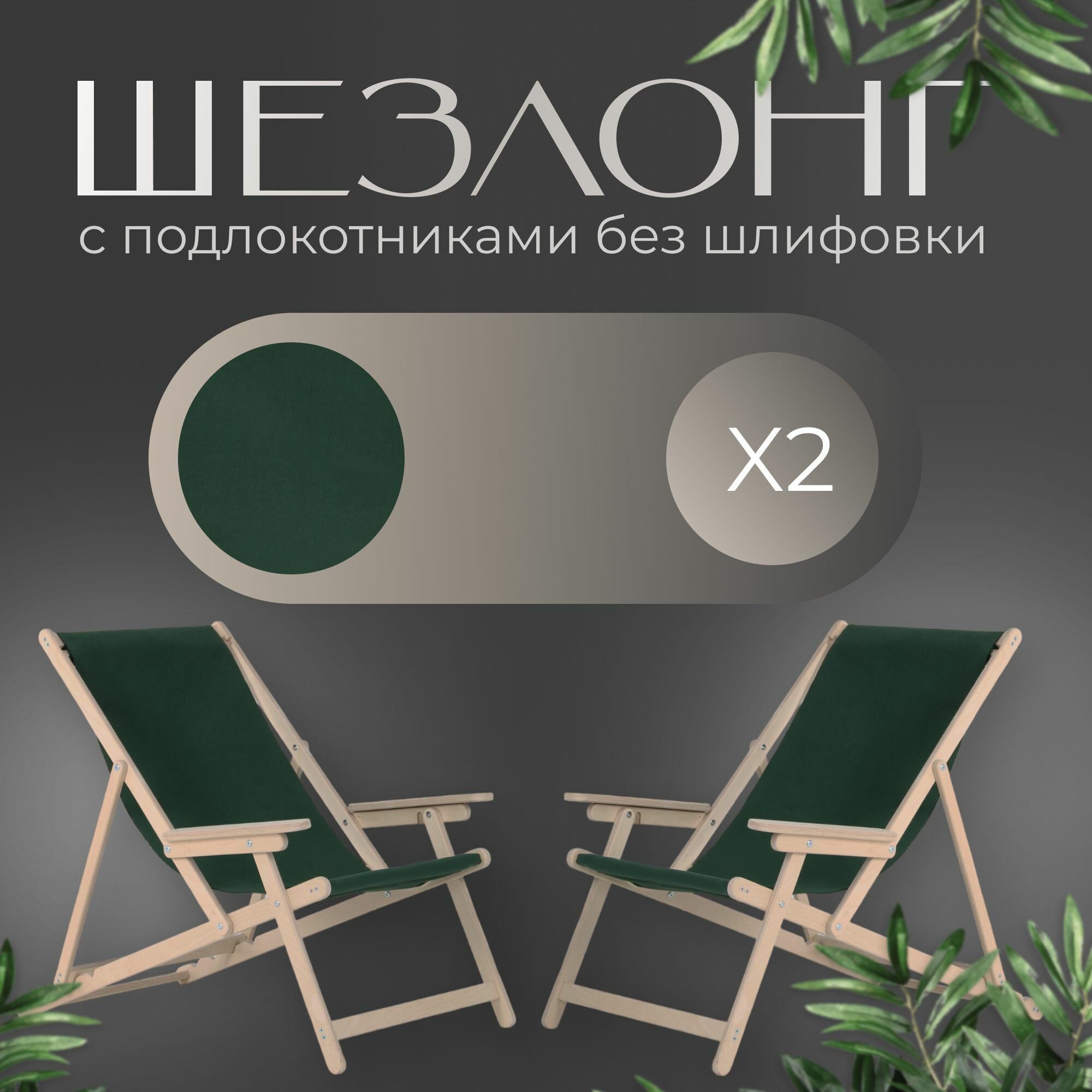 10 цен на Кресло-шезлонг "Элби" с подлокотниками без шлифовки с зеленой тканью для дома и для дачи, комплект 2 шт