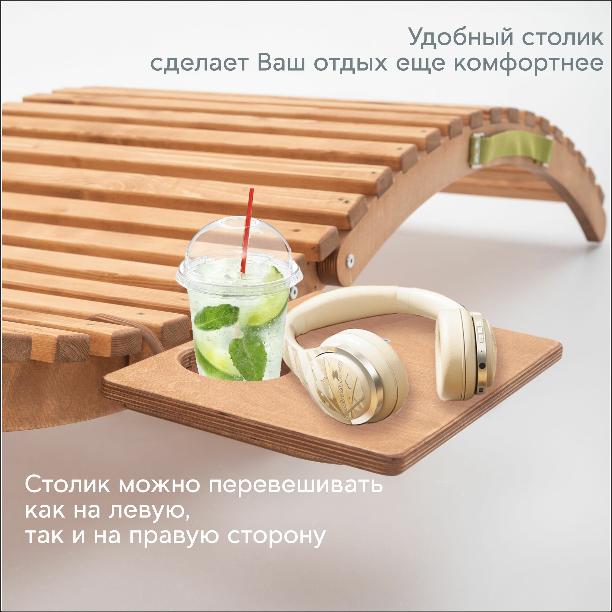 | Комплектация | складной шезлонг в собранном виде и навесной столик с подстаканником |
