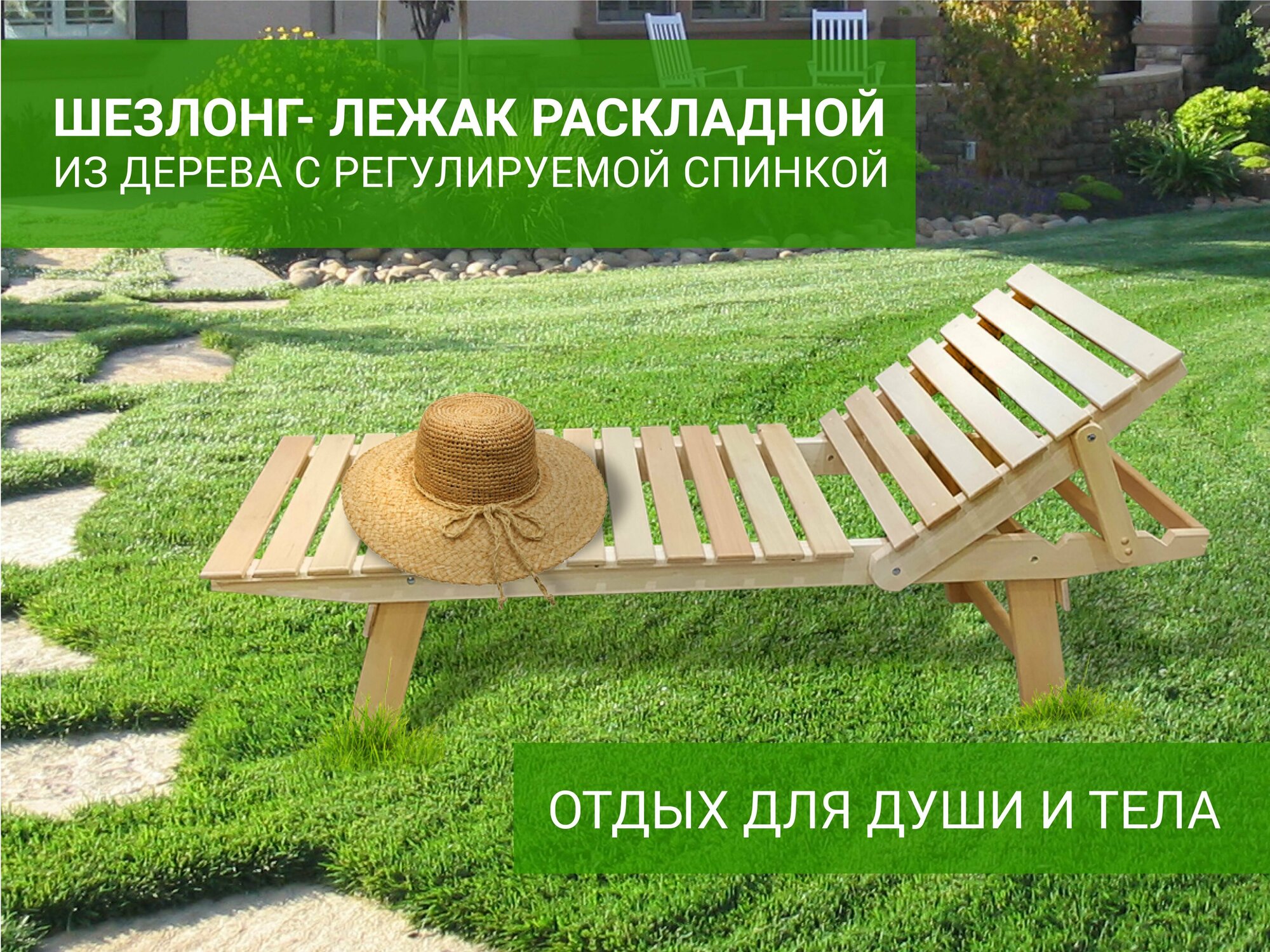 Шезлонг-лежак деревянный 55х188х44 массив липы / шезлонг для дачи / садовая мебель информация: