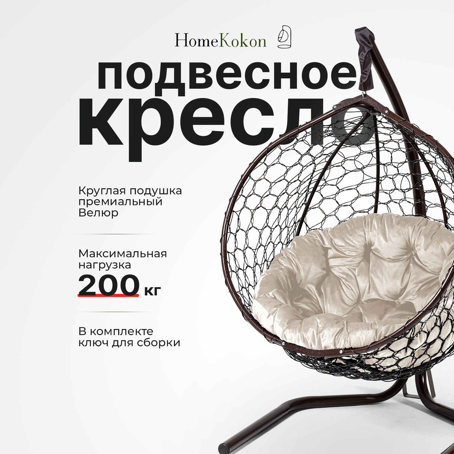 10 цен на Подвесное кресло-кокон Венге с Бежевой велюровой подушкой HomeKokon, усиленная стойка до 200кг, 175х105х65