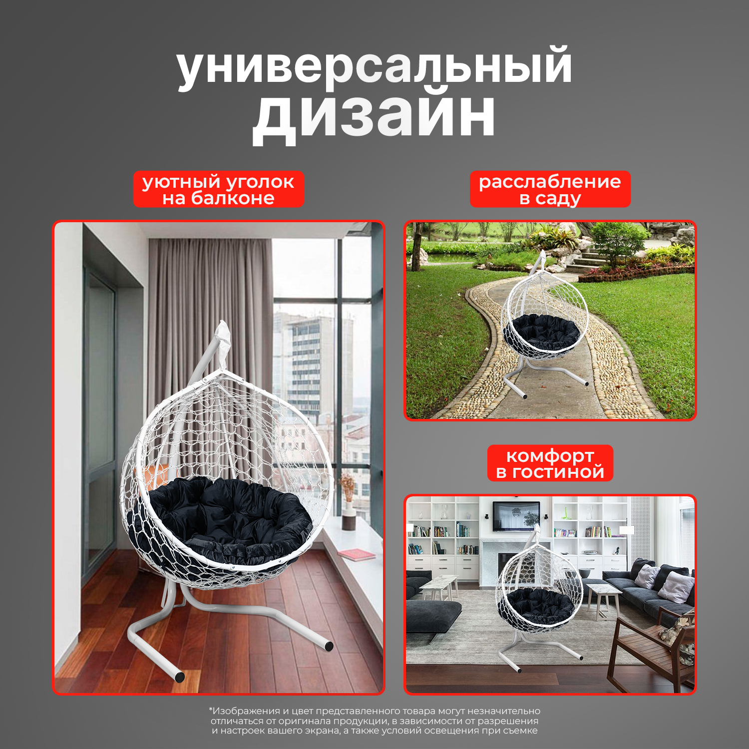Отзывы на Подвесное кресло-кокон с Черной велюровой подушкой HomeKokon, усиленная стойка до 200кг, 175х105х68