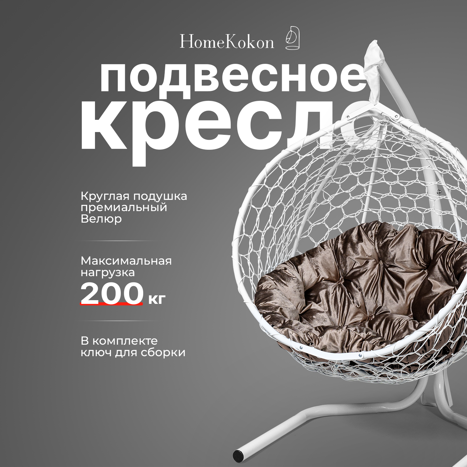 10 цен на Подвесное кресло-кокон с Светло- коричневой велюровой подушкой HomeKokon, усиленная стойка до 200кг, 175х105х64