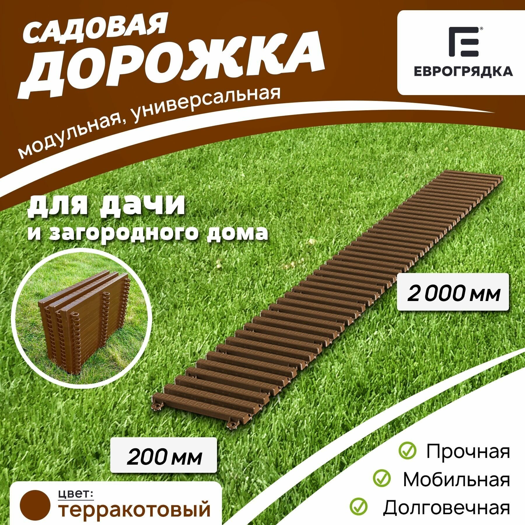 Садовая дорожка Еврогрядка 20х200 см, цвет: терракот информация: