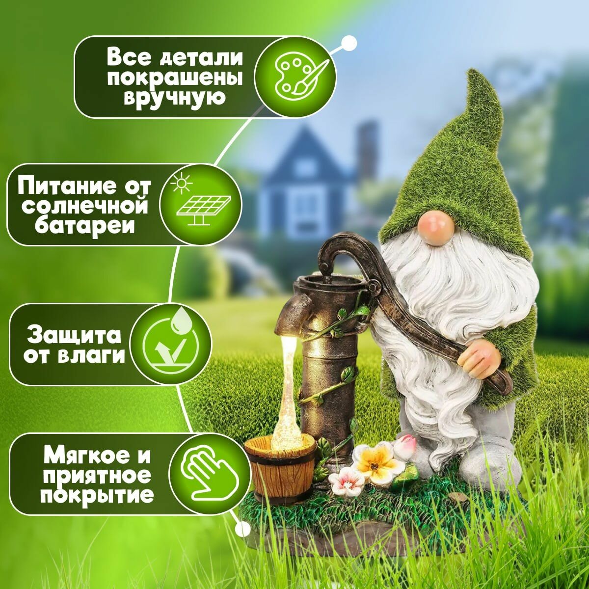 10 цен на Садовая фигурка на газон с подсветкой "Гном с водяной колонкой", материал - полиэфирная смола