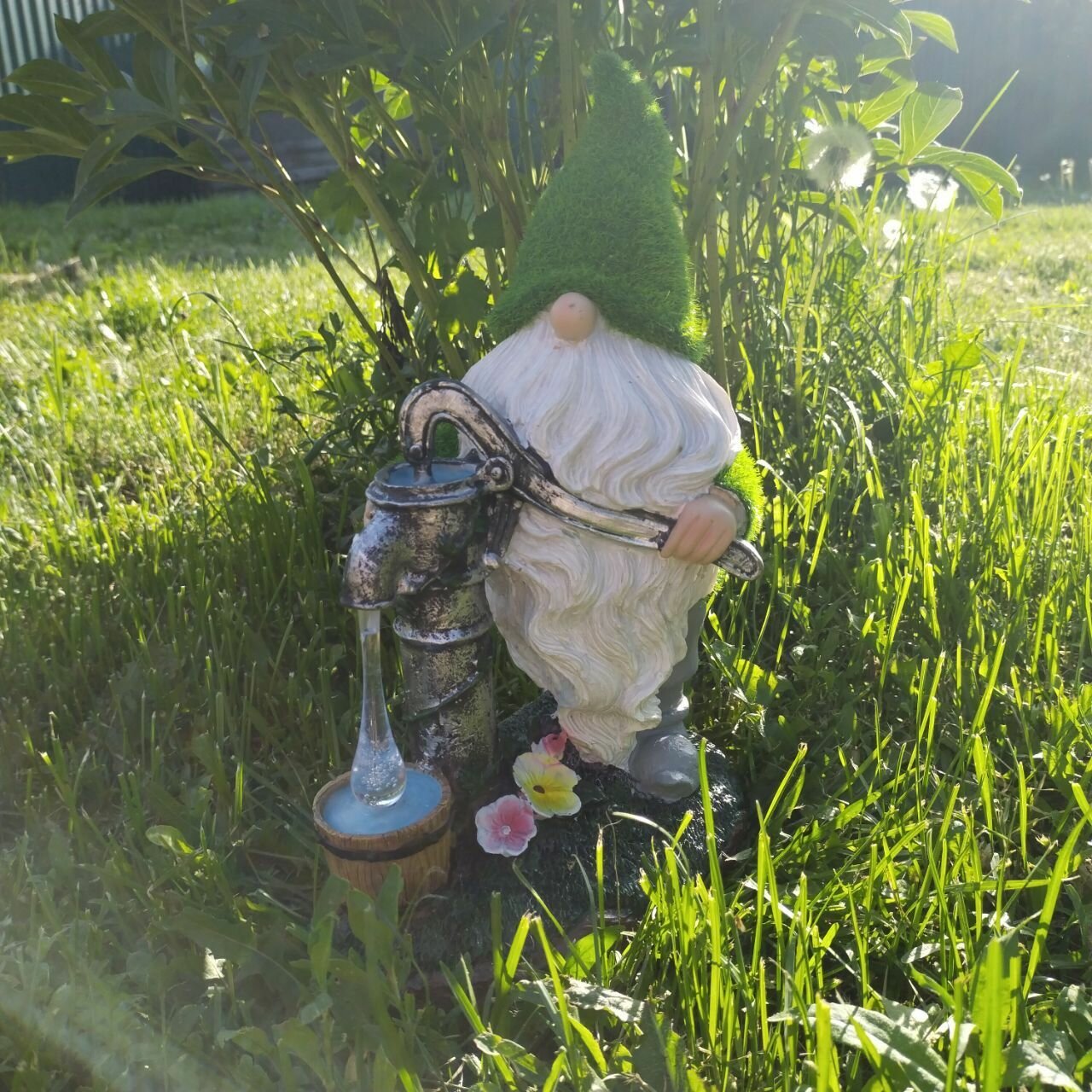Отзывы на Садовая фигурка на газон с подсветкой "Гном с водяной колонкой", материал - полиэфирная смола