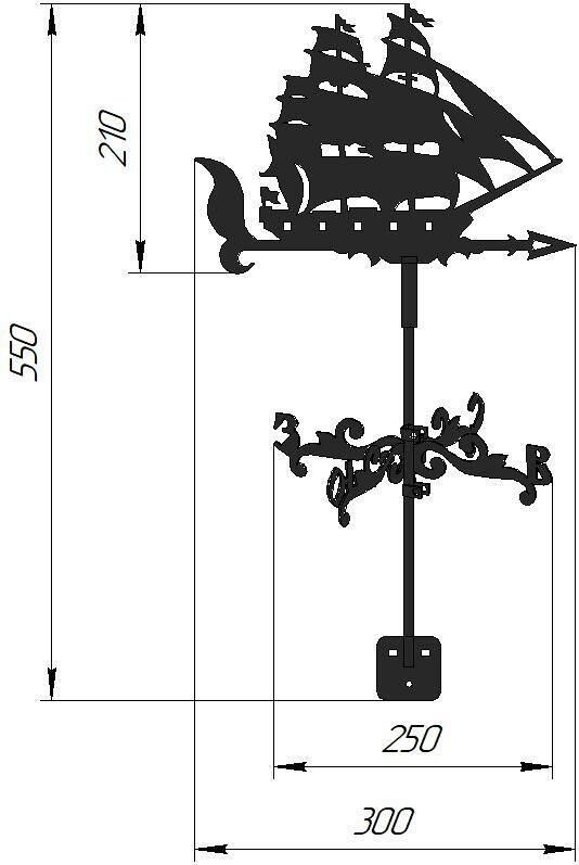 Флюгер на крышу, декор для дома, дачи FLUGER "Фрегат" малый 300x450 мм. информация:
