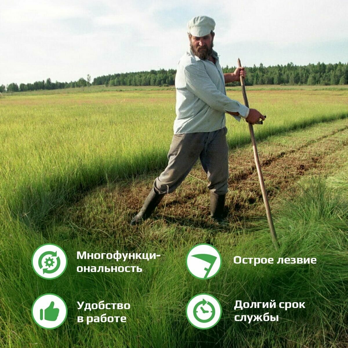 Отзывы на Коса Амбидекстр Люкс 8, 80 см. ручная стальная отбитая без косовища для травы, газонов, заготовки сена