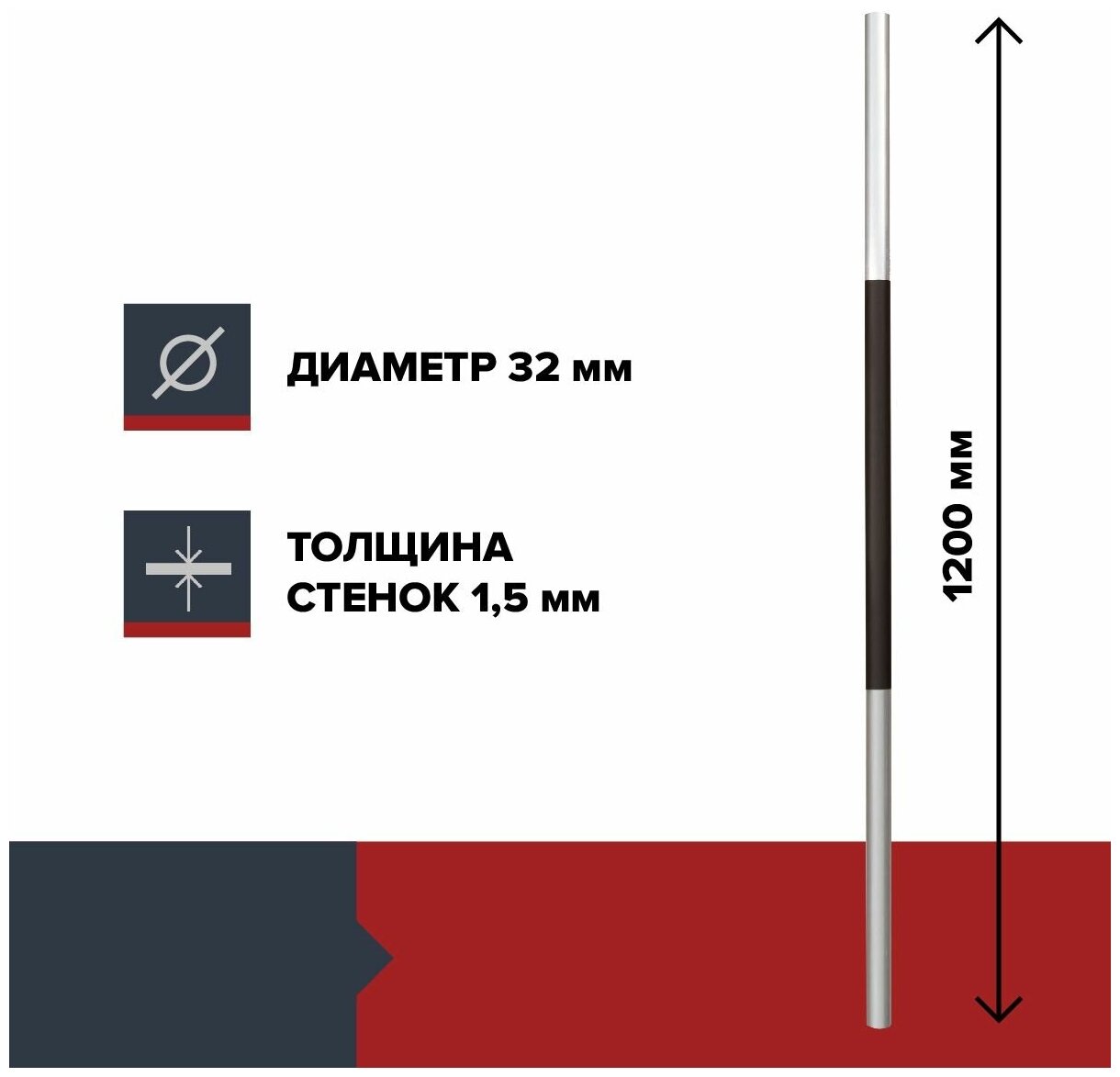 Черенок для лопаты алюминиевый с красной ручкой FACHMANN Garten D-32 мм, 133 см.