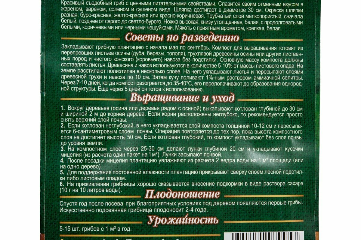 Мицелий на компосте "Подосиновик", на зерновом субстрате, 15 мл информация: