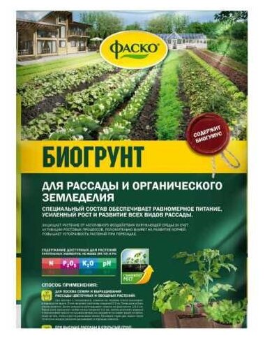 | Состав | Биогрунт Фаско для рассады и органического земледелия, 10 л, 3 кг |