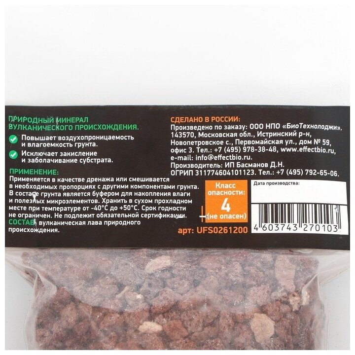 Субстрат & Дренаж Вулканическая лава UltraEffect EcoLine фр. 5-10мм 1.2л Отличый грунт для растений в том числе применятеся как грунт для аквариума информация: