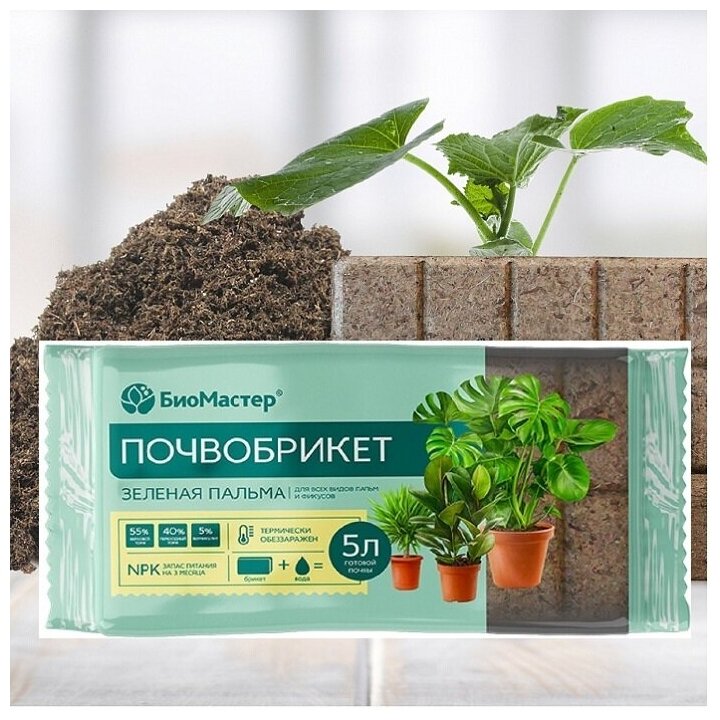 Почвобрикет/грунт для выращивания пальм/фикусов/драцен и других декоративно-лиственных растений Зеленая пальма 5л информация: