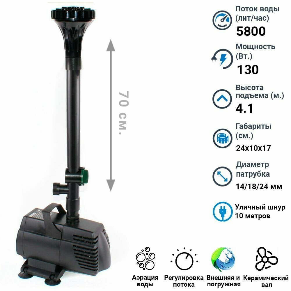 Помпа фонтан для пруда Hailea HX 8860F (5800 лит/час. Высота подъема 4.1 м. Мощн. 130 Вт.) информация: