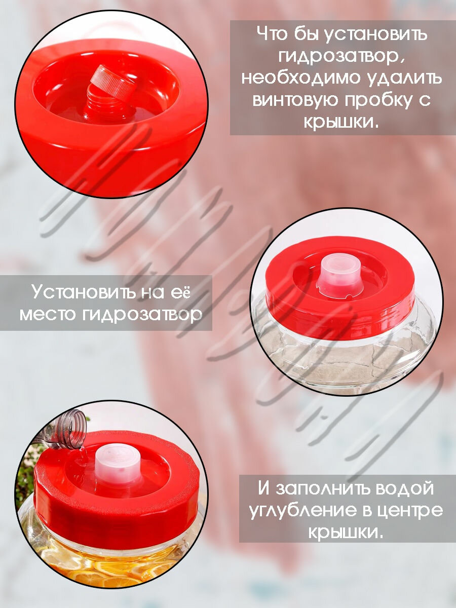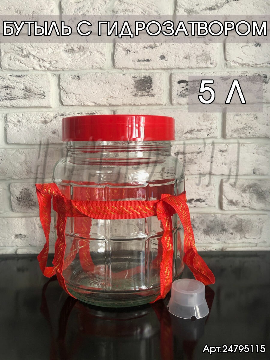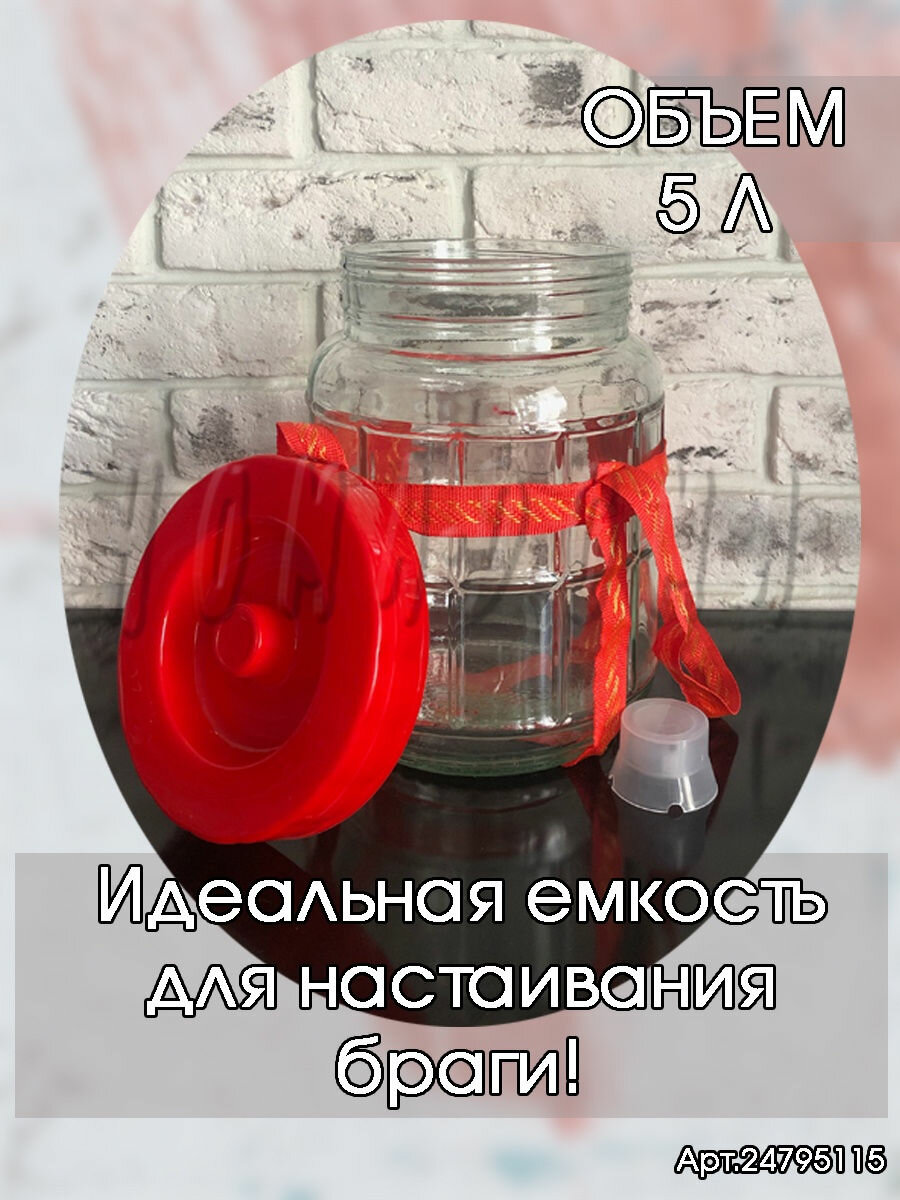 Банка с гидрозатвором стеклянная 5 литров / для самогона, для вина, для брожения, бочонок информация: