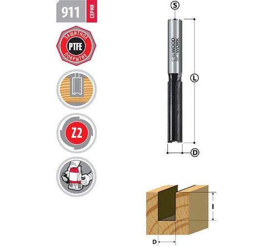 Фреза пазовая D-6mm I-25mm S-6 mm WOODWORK 911.0625.06 информация: