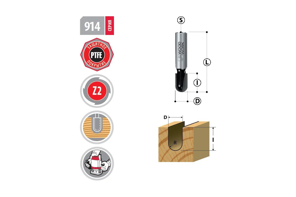 Фреза с радиусным торцом R2,0 I4,0 L45 S8мм Woodwork 914.2004.08 информация: