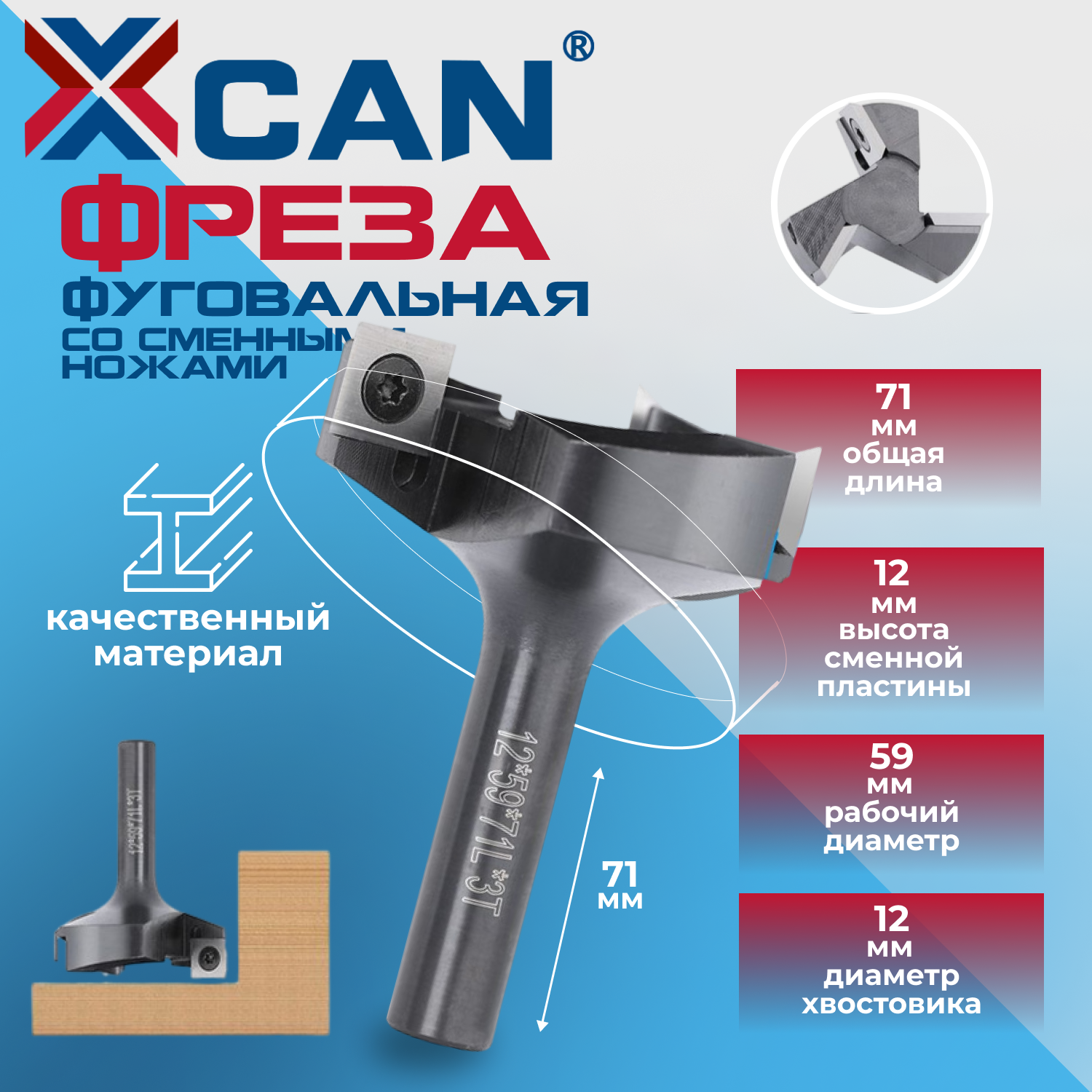 10 цен на Фреза фуговальная для выравнивания поверхности XCAN со сменными ножами 12х59х71Lх3T