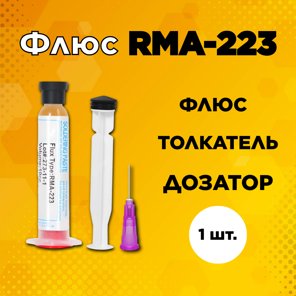Флюс гель, универсальный, для пайки микросхем и компонентов RMA-223, 10г. Дозатор и толкатель в комплекте. 5 штук 799 ₽