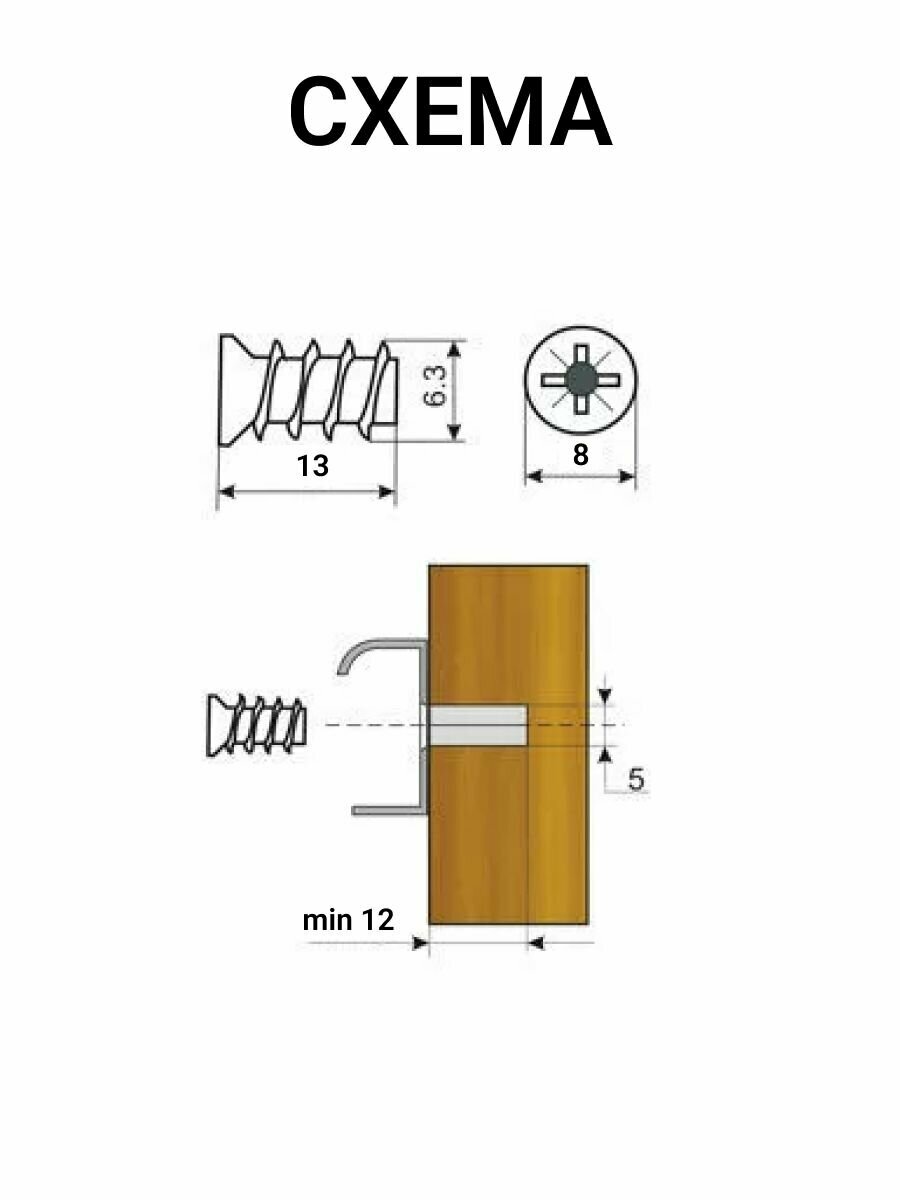Мебельный евровинт (винт) с потайной головкой 6,3x13 мм 80 шт информация: