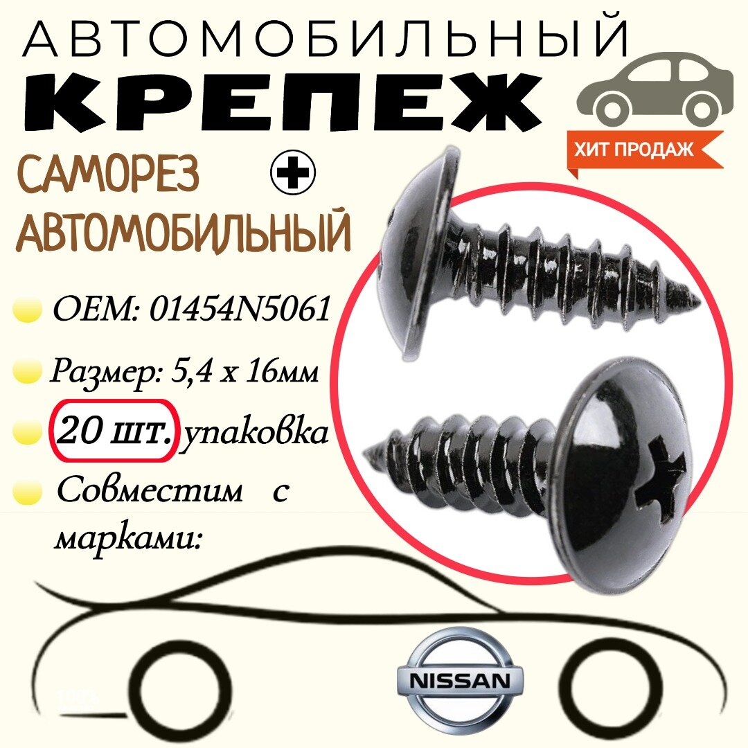 Отзывы на Саморез автомобильный. Для автомобилей Nissan(OEM: 01454N5061). Черный. 5,4х16мм. Крепеж для автомобилей. (Упаковка 20шт)