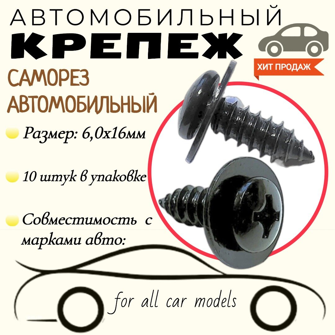10 цен на Саморез автомобильный с пресс-шайбой. Для автомобилей. Черный. 6х16мм.(Упаковка10шт)