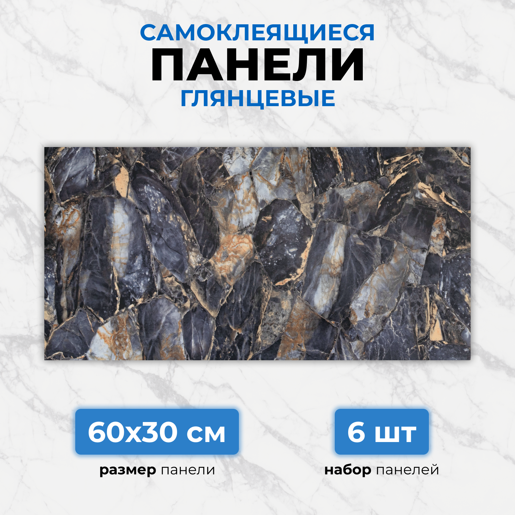 Темный гранит, 60х30 см плитка глянцевая, самоклеющиеся панели для стен, декор для дома на кухню, в ванную (арт. 83) 6 шт. информация: