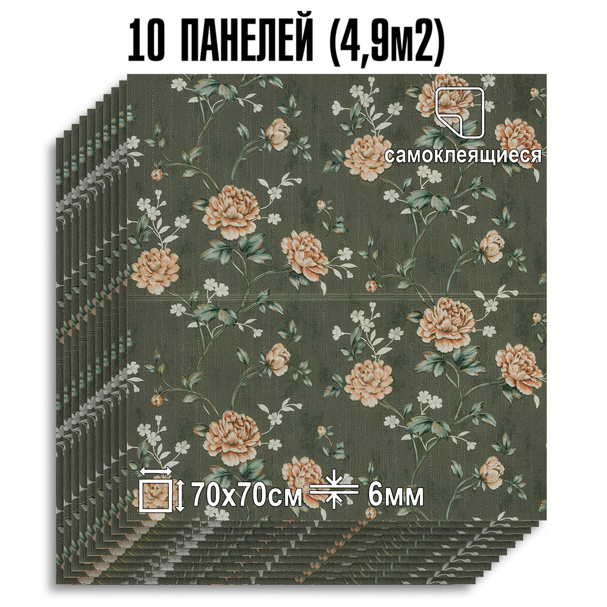 10 цен на Мега Комплект 10 шт 3D панелей для стен LAKO DECOR, Барокко цвет Зелёный, 70x70см, толщина 6мм
