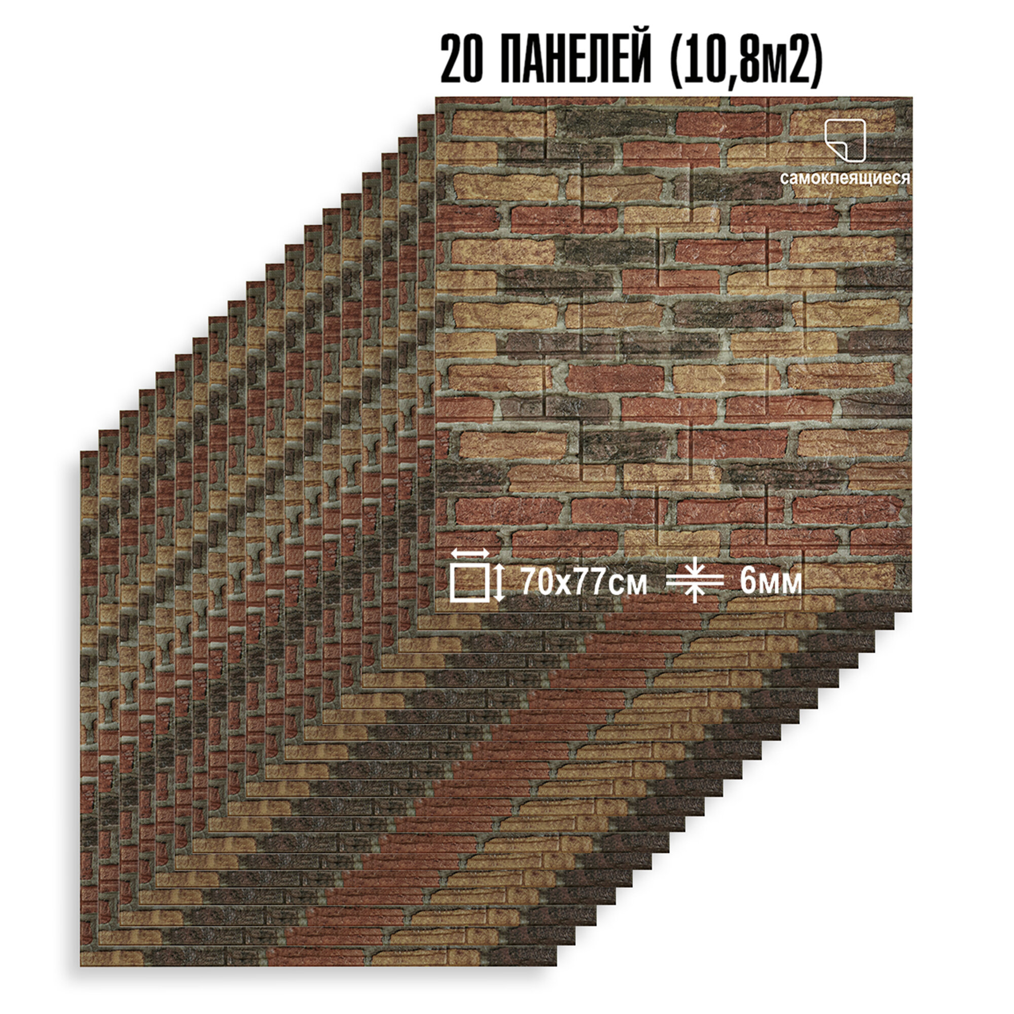 Самоклеящиеся ПВХ панели в комплекте, классический кирпич, бежевый 20 шт 1 999 ₽