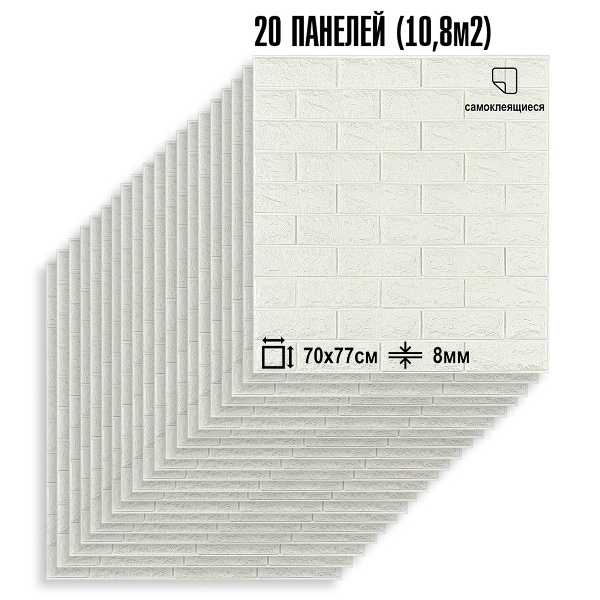 Самоклеящиеся ПВХ панели в комплекте, классический кирпич, белый 20 шт 1 999 ₽