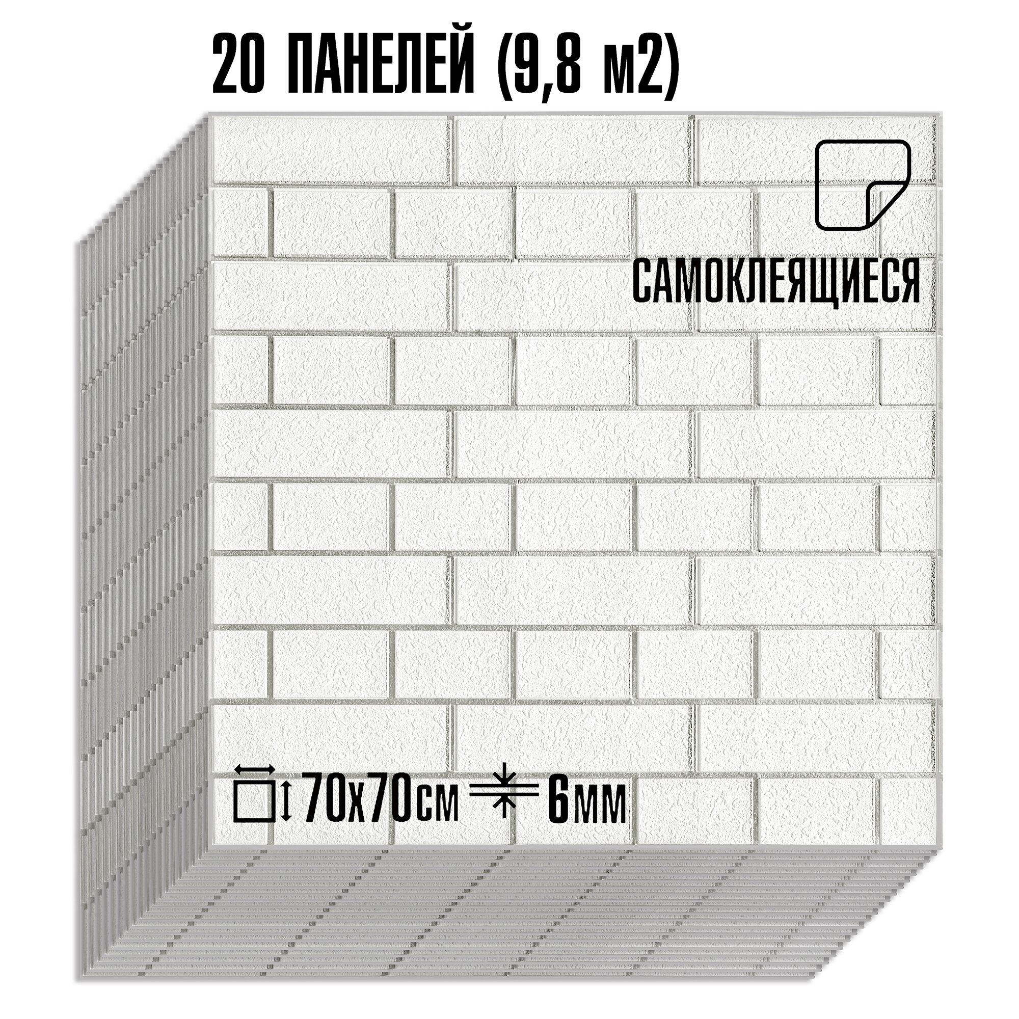 Самоклеящиеся ПВХ панели в комплекте, классический кирпич, белый 20 шт 1 999 ₽