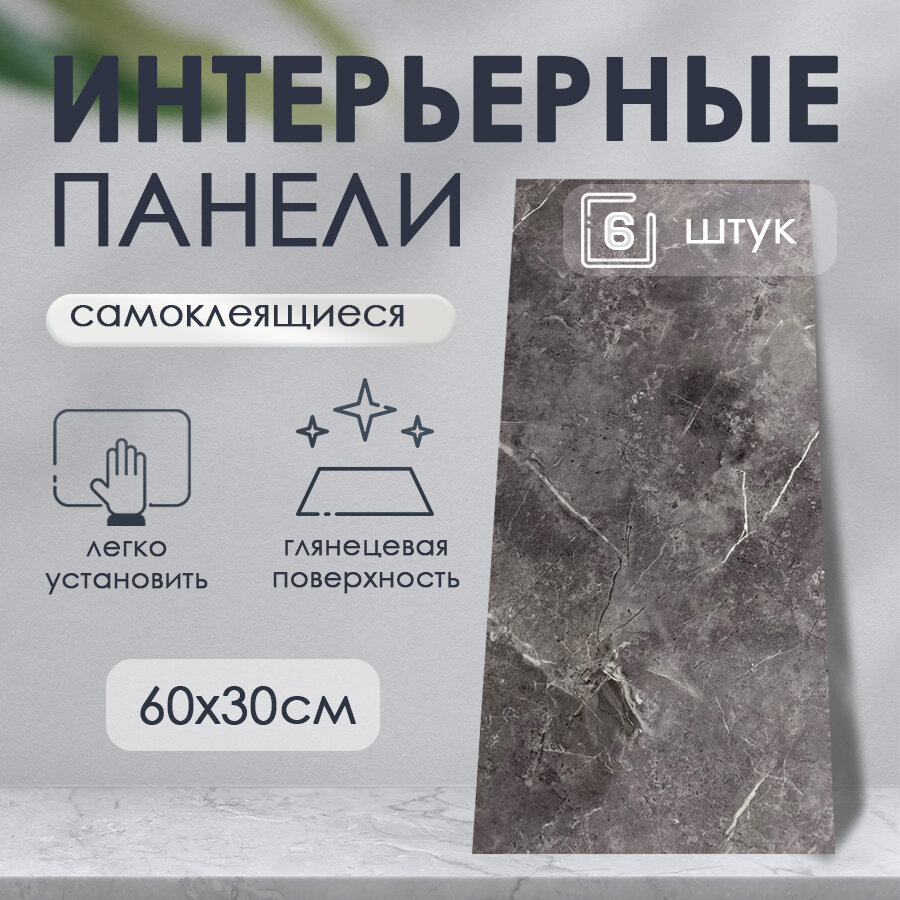 Панели ПВХ самоклеящиеся 6 шт. Серо-коричневый мрамор информация: