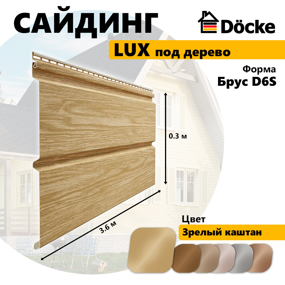 Сайдинг Docke LUX из ПВХ под дерево, Брус D6S, (длина 3,6 м), зрелый каштан информация: