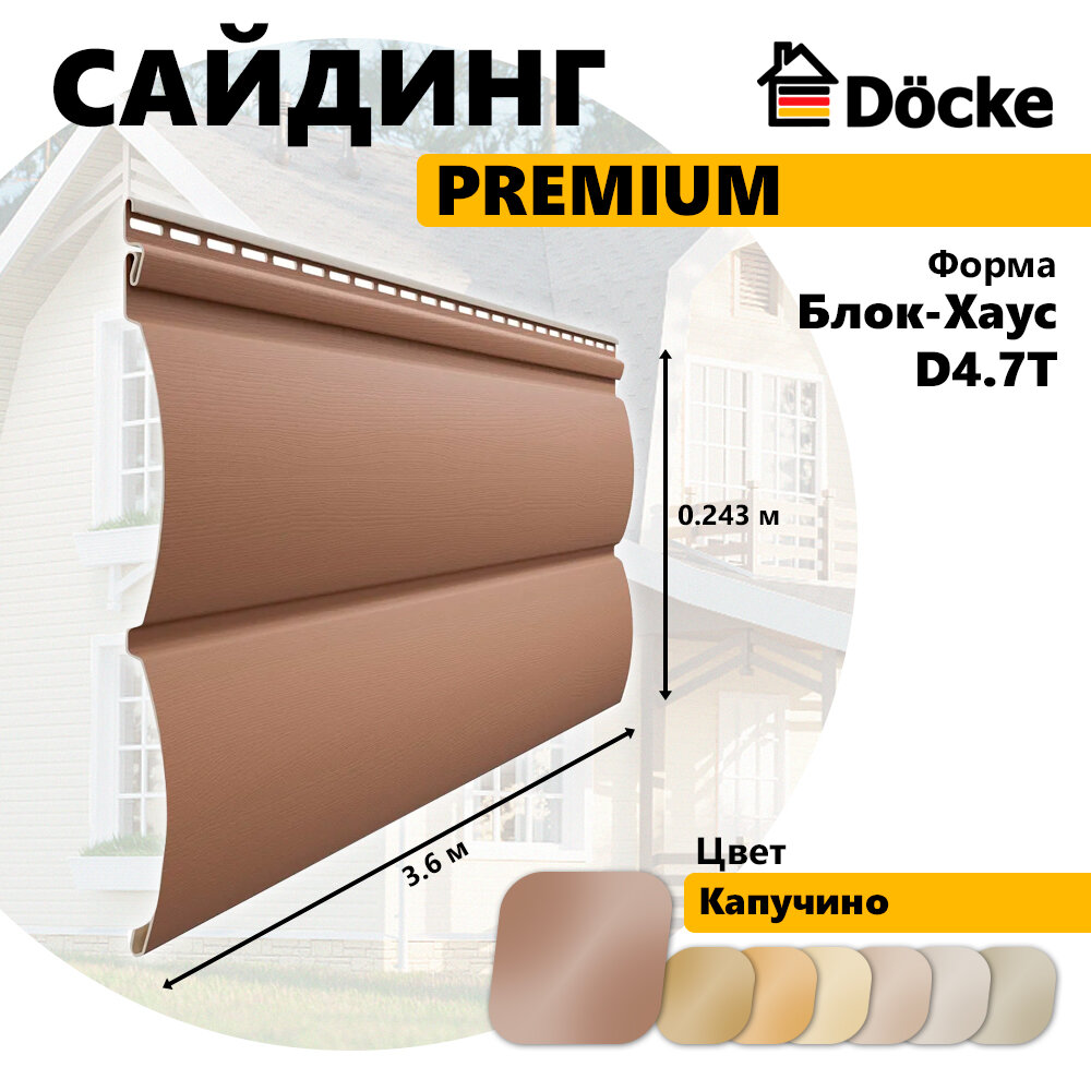 10 цен на Сайдинг Docke PREMIUM из ПВХ, Блок-Хаус D4.7T, (длина 3,6 м), капучино