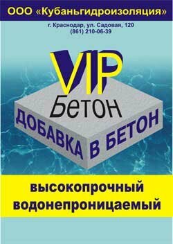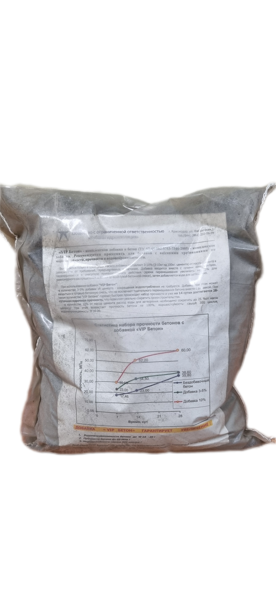 "VIP Бетон" - комплексная добавка в бетон для придания ему высокой прочности, водонепроницаемости, износостойкости, долговечности, 2,5кг. информация: