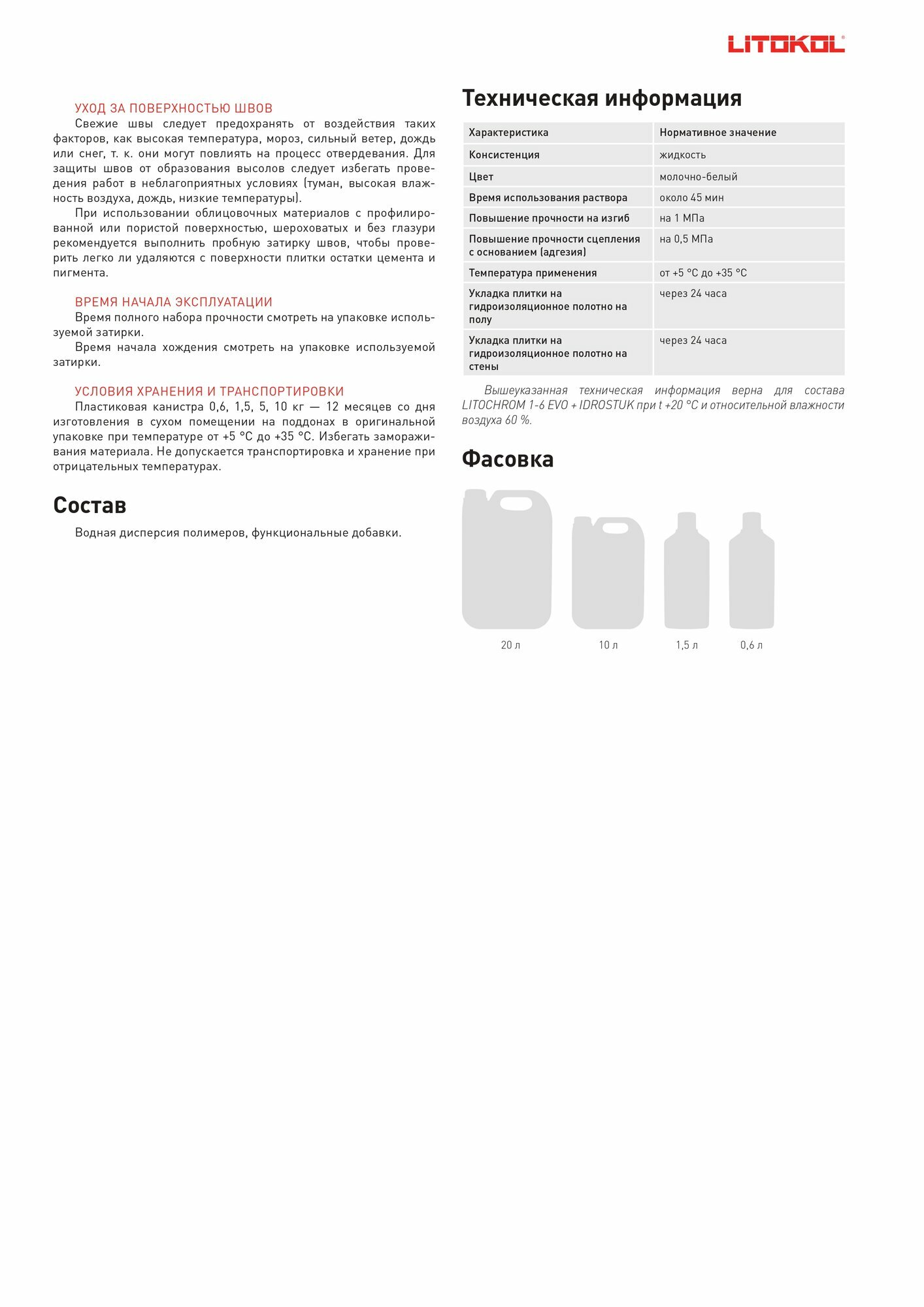| Дополнительная информация | Состав: водная дисперсия полимеров, функциональные добавки |