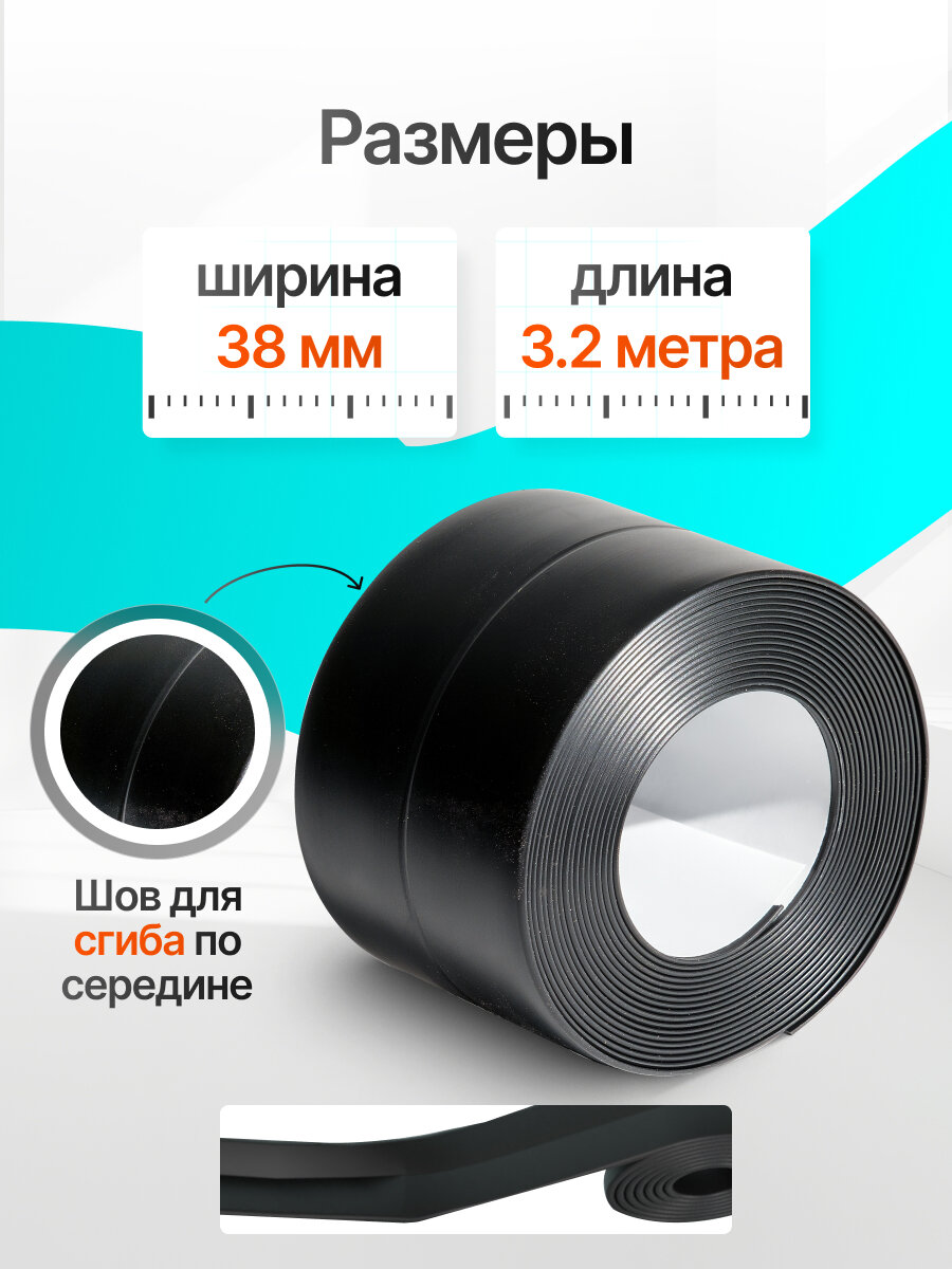 Бордюрная лента 55 мм х 3,2 м, Черная, Самоклеющаяся. Для ванны и кухни. 500 ₽