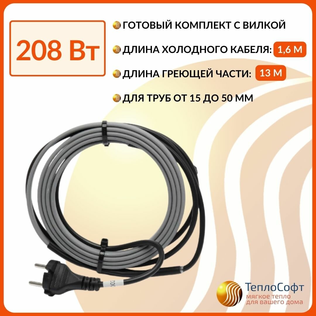 Греющий кабель на трубу саморегулирующийся 13м 208Вт / для водопровода / для водостока / обогрев труб информация: