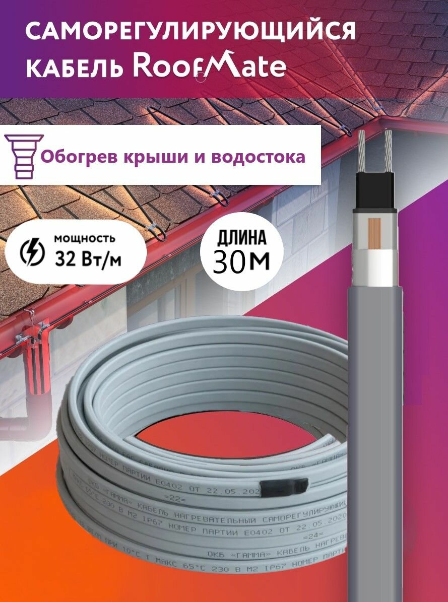 10 цен на Греющий кабель для обогрева труб, водостоков и кровли RoofMate, 32 Вт., бухта 30 м.