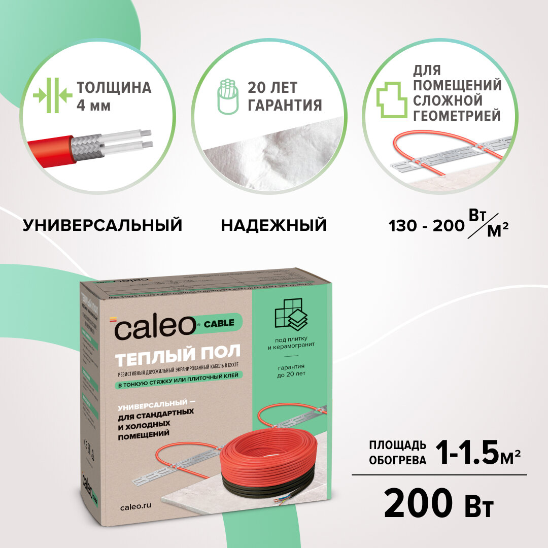 Греющий кабель для теплого пола Caleo Cable 10W-20 200Вт информация: