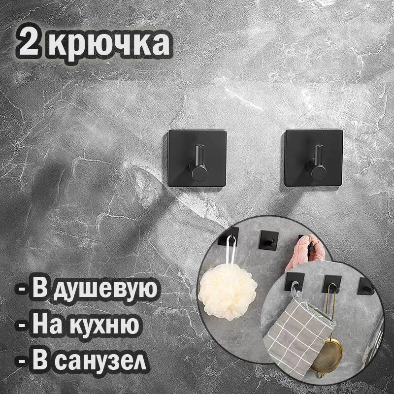 Самоклеющиеся черные крючки для ванной и кухни, держатель для вещей и полотенец в ванную набор 4шт 490 ₽