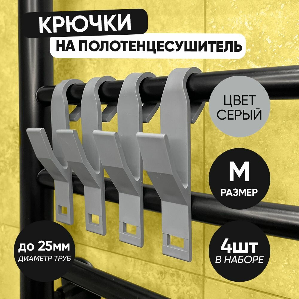 Отзывы на Крючки для ванной 4 шт. серые малые для труб диаметром до 2,5 см на полотенцесушитель пластиковый для полотенец, одежды , обуви