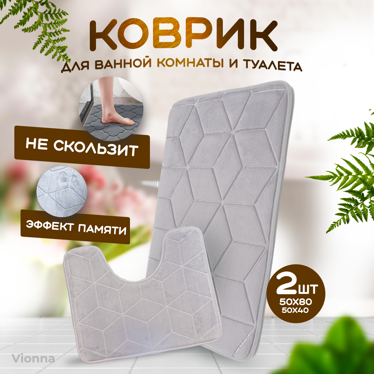 Отзывы на Коврик для ванной комнаты и туалета/ Набор противоскользящий ковриков 2 шт (50х80 см), (50х40см)-серый