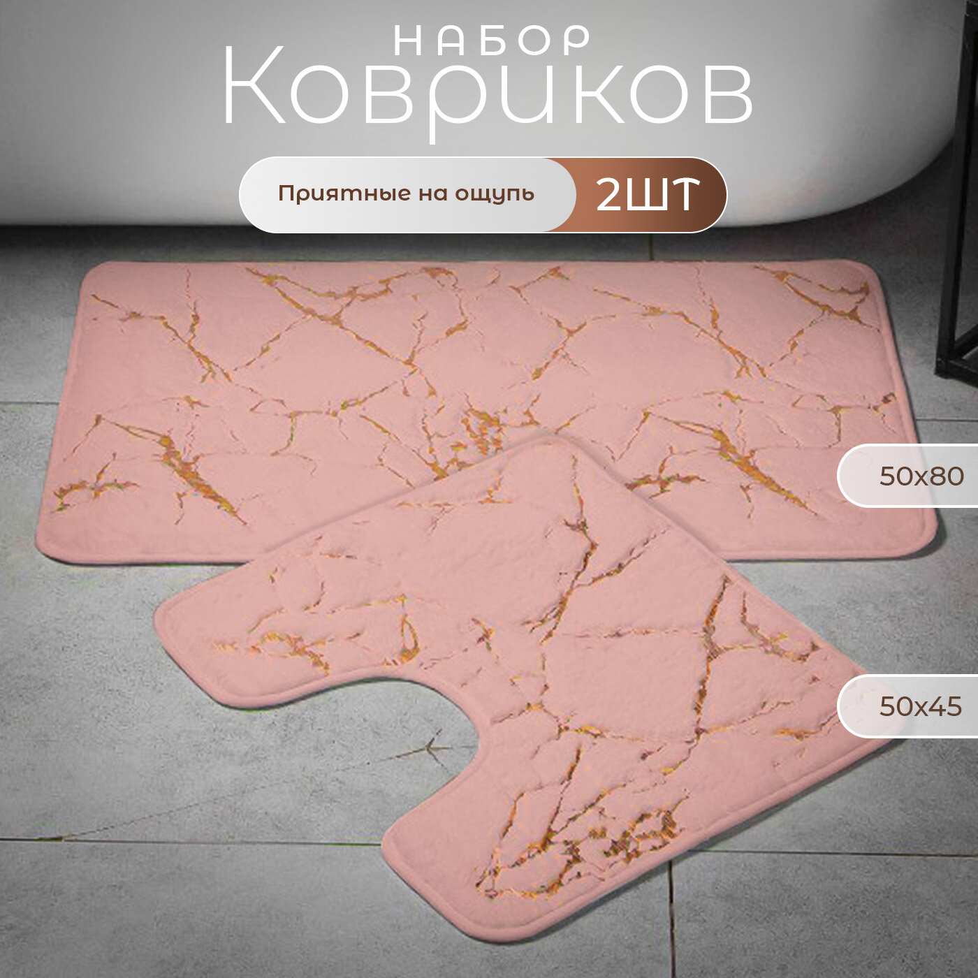 Коврики для ванной и туалета 80х50, 45х50 с вырезом противоскользящие, набор 2 шт информация: