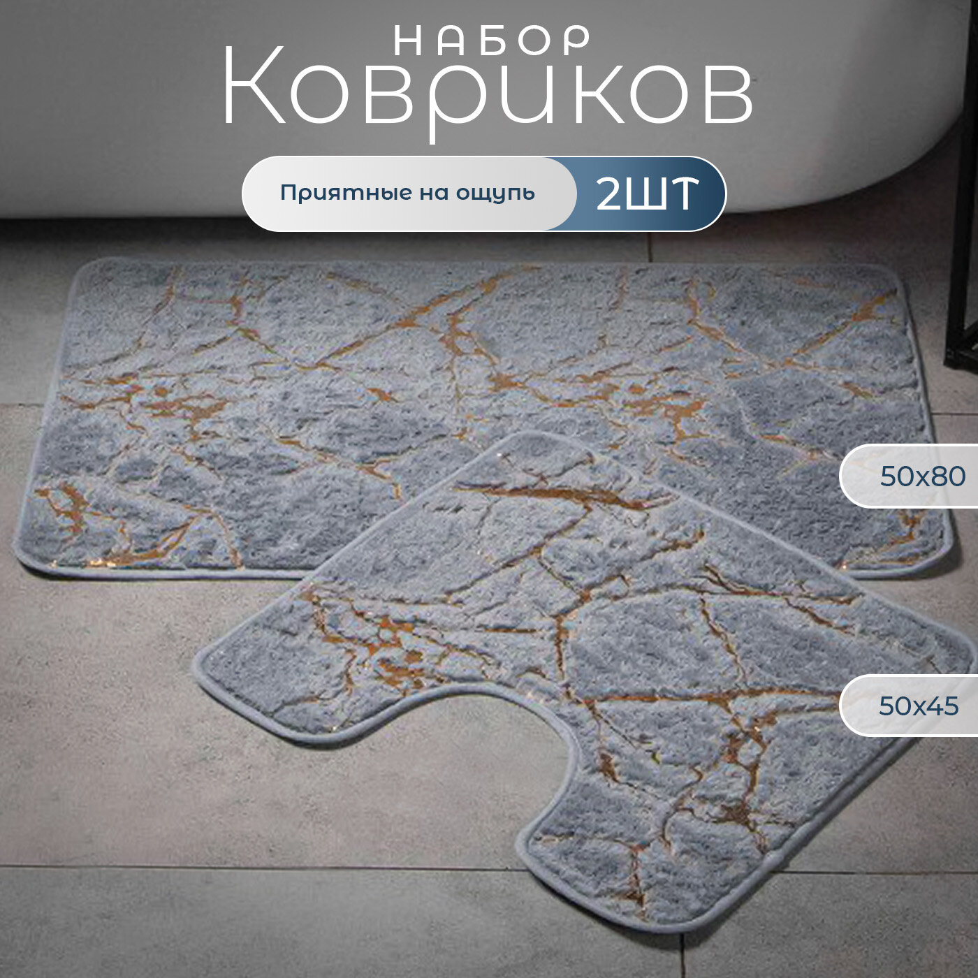Коврики для ванной и туалета 80х50,45х50 с вырезом противоскользящие,набор 2 шт информация: