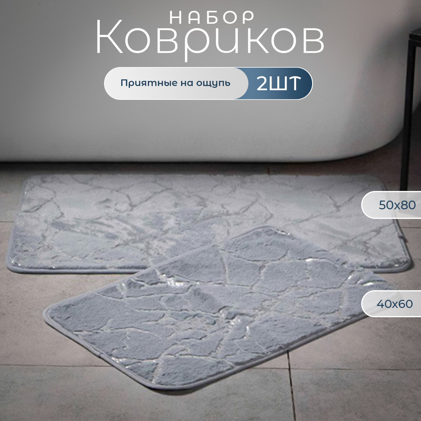 Коврики для ванной и туалета 80х50, 40х60 противоскользящие, 2шт 1 377 ₽